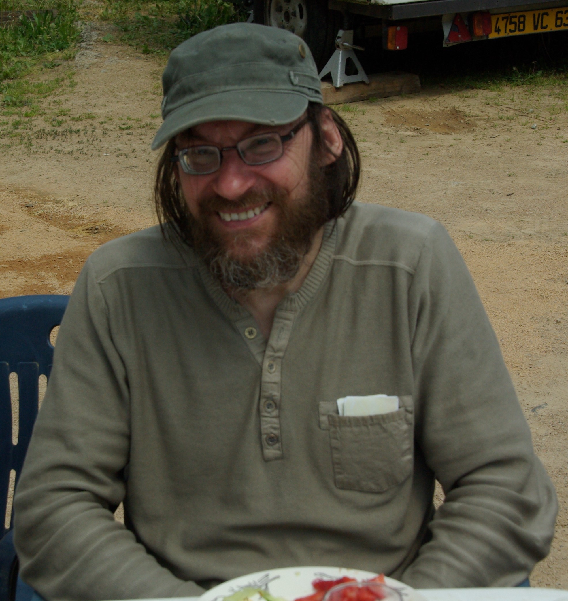 Claudio, c’était notre Géo Trouvetou de l’informatique et Big Chief de la toile. Il a créé et fait vivre le site d’Humus depuis la création de la foire. Ce n’était certes qu’une facette de cet individu que nous avons peu à peu appris à connaître. Il œuvrait toujours avec le cœur, car si celui-ci n’était pas de la partie, Claudio non plus. Dans l’association Humus, le cœur y est de mise, les engagements aussi, parfois au-delà de nos capacités physiques, qu’il dépassait toujours au final pour terminer le boulot, dans des rangements harassants. Si certains pestaient contre les absents, lui était arc-bouté sur la tâche à terminer. Il courait de partout, avant, pendant et après, toujours aux manettes pour permettre aux différents conférenciers, cinéastes, artistes de développer leurs propos dans des conditions de qualité maximum. Il trouvait toujours la solution lorsqu’un problème se présentait, que ce soit technique, matériel. Nous lui devons toutes les finalisations de nos affiches et flyers, le calcul des marges à laisser pour l’imprimeur, l’ajout des logos, des infos de dernières minutes, les dernières fautes à corriger dans l’urgence. Le militantisme le nourrissait, dans sa façon personnelle de lutter, discret mais présent dans les manifs, à réfléchir aux alternatives, les appliquer dans son quotidien et les faire partager. Quand la maladie a pointé le bout de son nez, elle semblait, dans ces moments de renaissance qu’était la conception de la nouvelle édition, devoir se casser du paysage illico, tant l’énorme énergie que déployait l’énergumène, ne pouvait laisser manœuvrer la camarde. La dernière édition, sans doute la plus compliquée pour lui, n’a pas semblé produire les mêmes effets, puisque Claudio nous signifiait son désir de ne plus être de la partie. Mais nous n’y croyions guère, persuadés de le revoir bien vite.